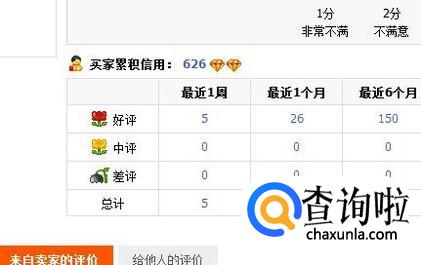 接着我们就可以看到自己的买家等级和信用分数,还能看到最近6个月内的评价情况。