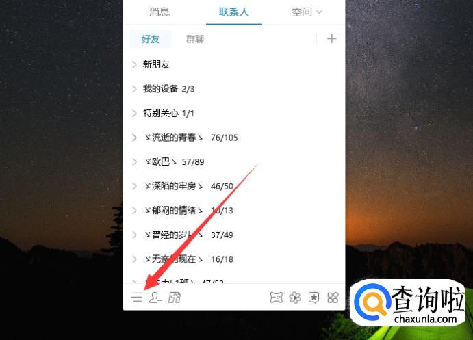 登录电脑QQ,点击图示按键进入主菜单,如图所示。