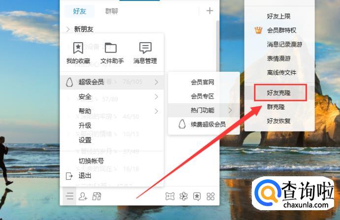 克隆QQ好友,需要登陆电脑QQ,在主菜单选择超级会员,找到好友克隆功能,登录被克隆的QQ账号,勾选需要克隆好友,点击克隆,再确认克隆即可。以下用Windows10系统的电脑QQ(V9.1.2)操作演示一下。