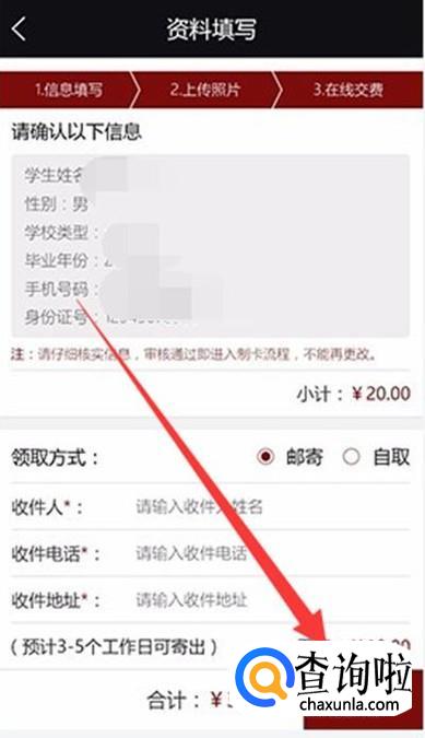 确认付款,即可完成办理,过几天就会快递到自己家里面,如图所示。