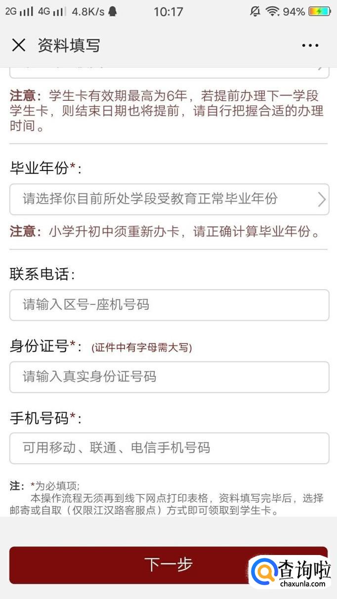 进入之后,填写个人信息,点击“下一步”,如图所示。