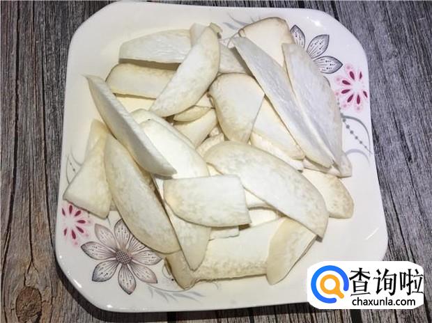 鸡腿菇清洗干净,切成薄片。鸡腿菇一定不要切太厚哦,切太厚不好吃。