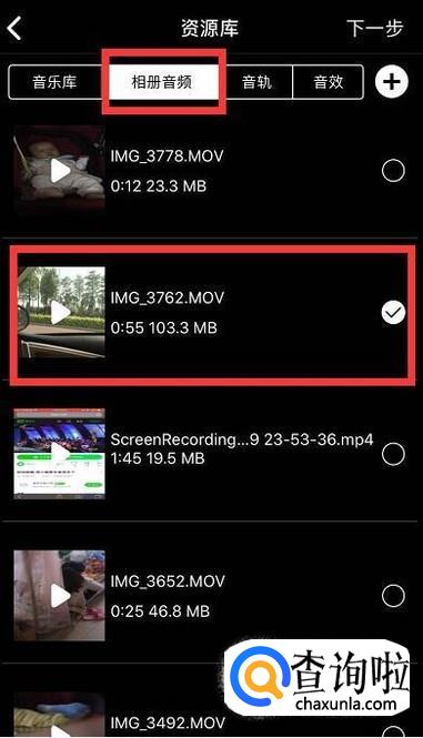 然后再点击音轨,点击播放键,勾选一个自己喜欢的音轨,再点击下一步。
