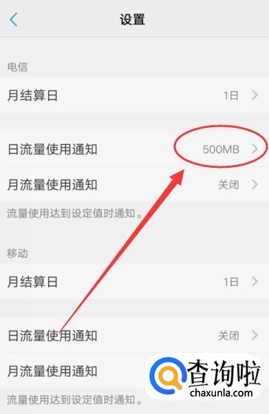 进入下一界面之后,点击图示位置,将其流量通知关闭,即可解除手机限速,如图所示。