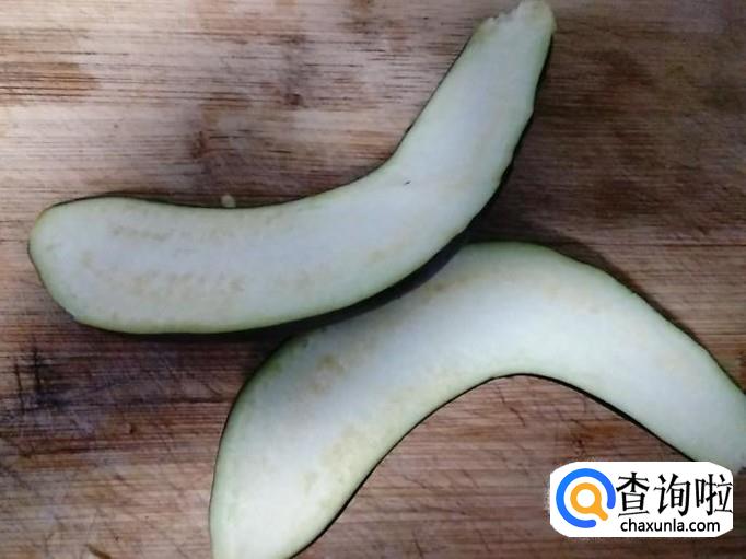 准备一个茄子,破成两半,然后切成小碎块,茄子拿来做酱是最好不过得了。