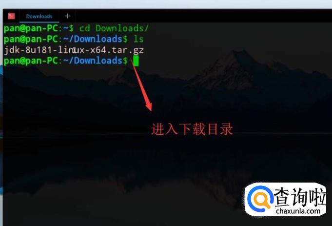 接下来进入Linux系统,运用cd命令进入文件下载目录,如下图所示