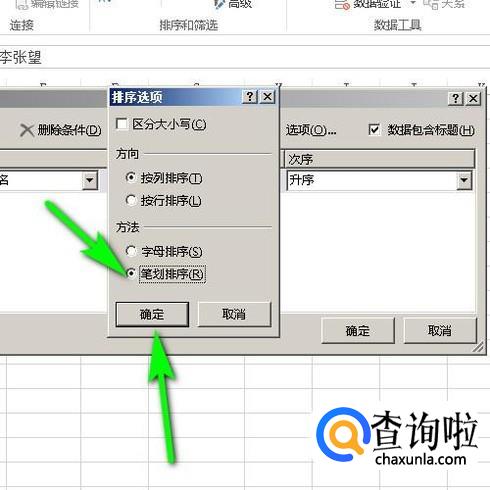 弹出一个对话框,在方法这里点选:笔划排序;再点确定。