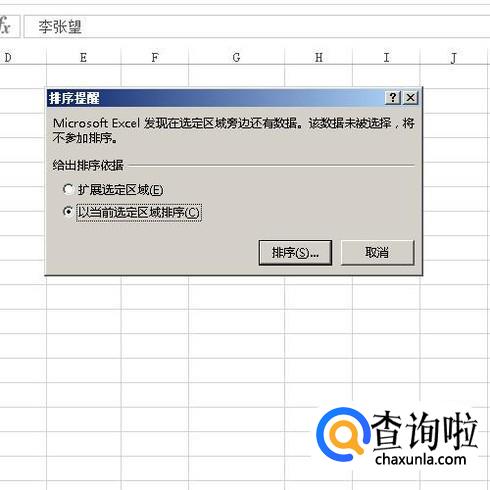 弹出排序提醒对话框,选择第二项:以当前选定区域排序;再点确定。