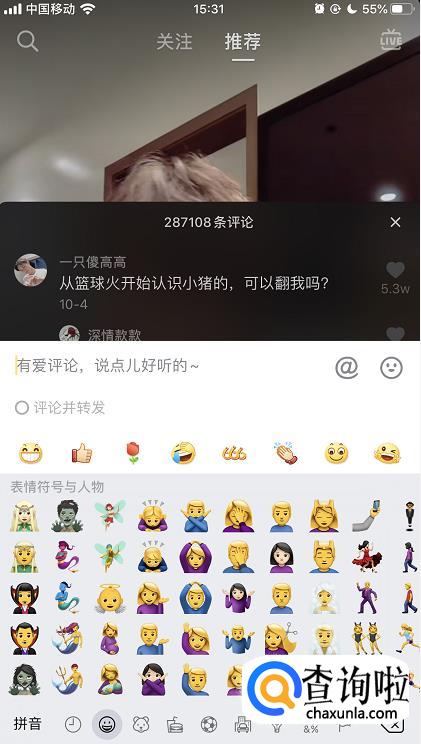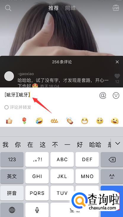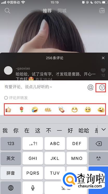 另外,在评论页面直接点击输入框,在该窗口也可以选择添加表情。