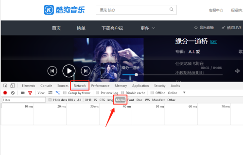 4、页面下方出现元素窗口,点击【Network】,再点击【Media】。