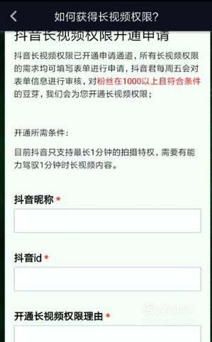 进入之后,填写自己的抖音账户信息,点击提交即可申请长视频权限,如图所示。