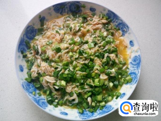 韭菜 50克,虾皮 70克,鸡蛋 3个 。