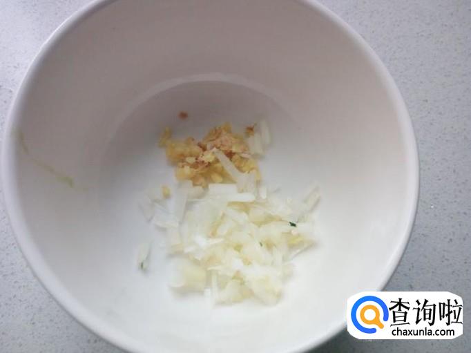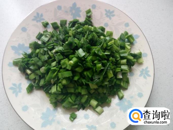 韭菜用水清洗干净,控干水分,切成碎末,装盘备用。