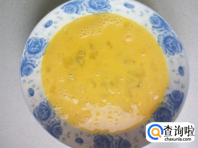 鸡蛋打入盘中,搅拌成鸡蛋液。