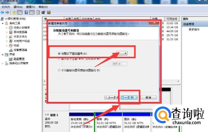 在弹出的窗口里,不用修改数字,这样就可以将剩下的全部的未分配空间做成D盘,直接点击【下一步】即可。