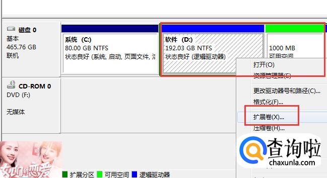 接下来对D盘右键点击【扩展卷】,在【扩展卷】窗口,将之前压缩出来的再换给D盘,再点击【下一步】即可。 - 010