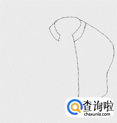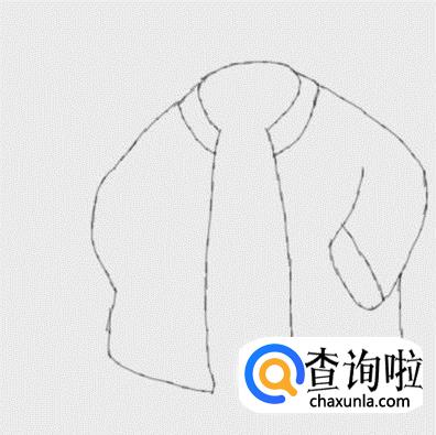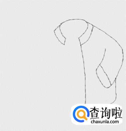 再在领口的左侧画出衣服右侧的部分,如图所示: