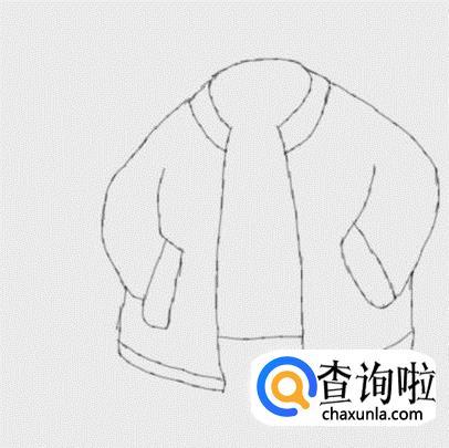 最后在衣服的下面画出衣服的底边线,这样简笔画一福就画好了,如图所示: