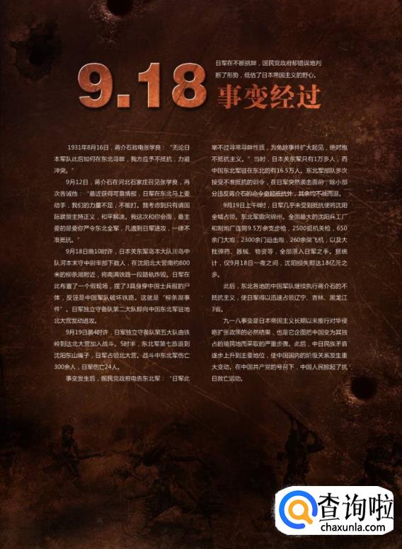 培养孩子的爱国主义精神,家长们可以借用历史典故,历史事件作为很好的教育素材,从中引导孩子们正确认识历史,培养孩子们的爱国主义精神。九一八事变,就是一个十分典型的爱国教育素材。 - 010