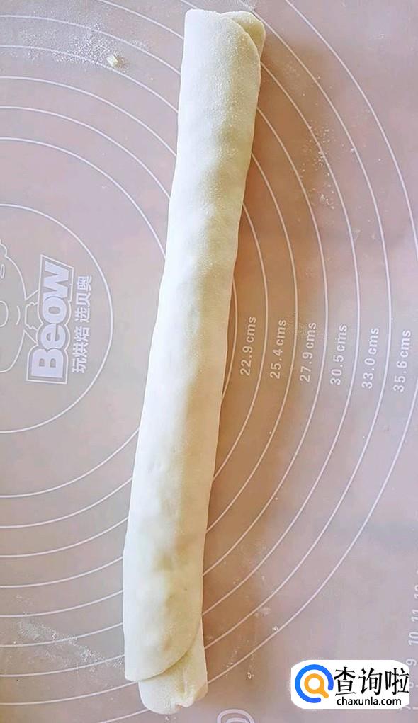 分别擀成方形的面皮,在上面撒上盐,刷上一层薄油,由下往上卷起来,封口收紧。