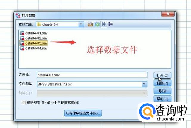 接下来在打开数据的界面中选择要操作的数据文件,如下图所示