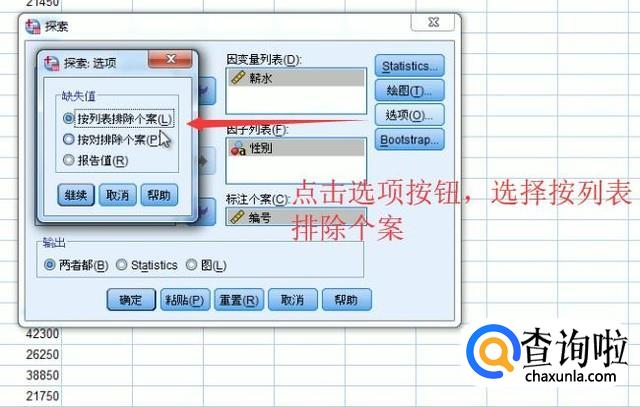 然后我们选择选项按钮,在选项界面中勾选按列表排除个案选项,如下图所示