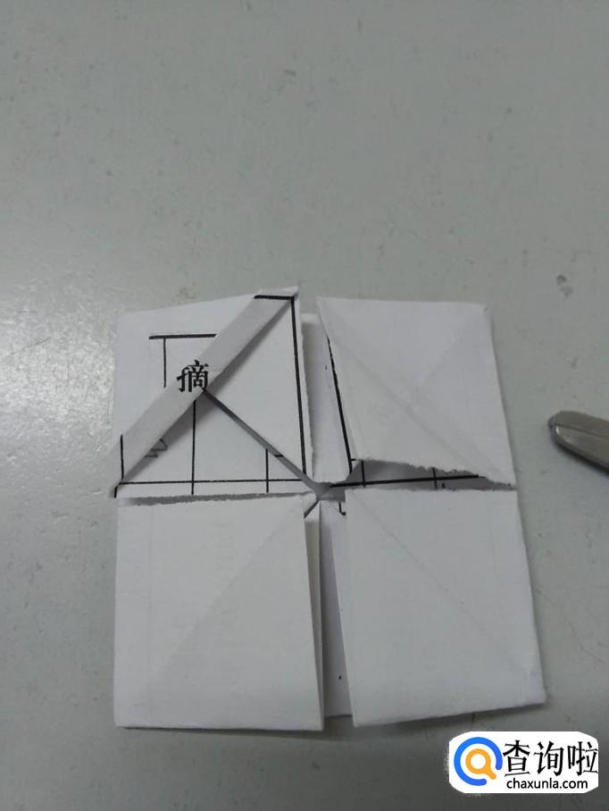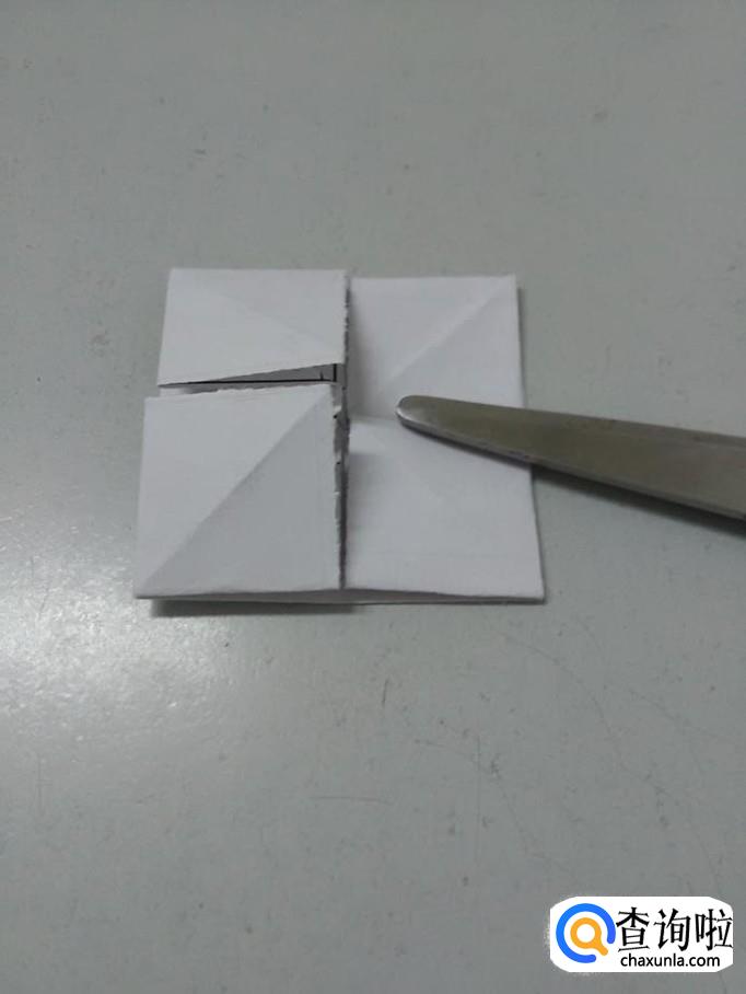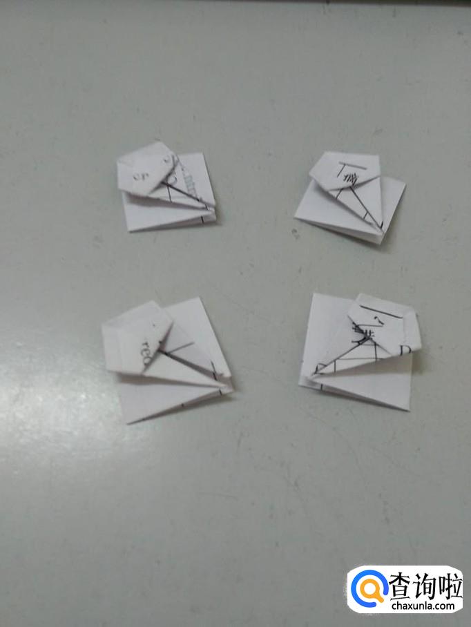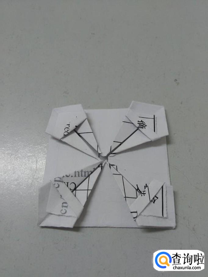 其他三个小正方形也按同样的方法折,折成如下的形状。