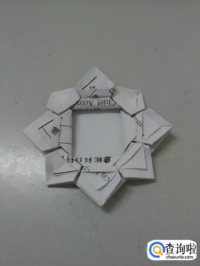 用手将花篮底部捏起来,捏成立体的正方形,莲花花篮就折好了。