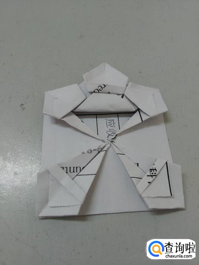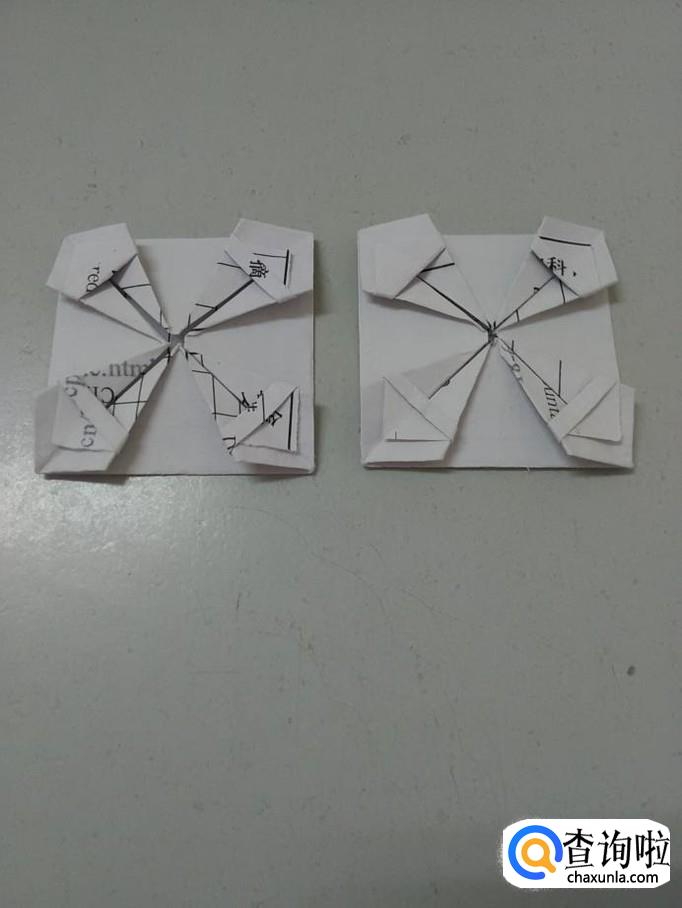 第二张正方形的纸,也用上述方法,折成一模一样的形状。