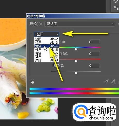 点击“全图”下拉按钮,弹出菜单中再点:黄色