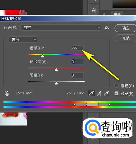 接着,把色相的参数修改为-55;当然这个参数值不是固定的,不同的图片,所设置的参数不一样,大家按照自己图片来设置。