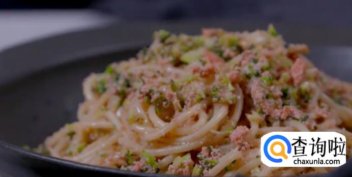 首先煮意面,在水里加点盐,面用滚水煮8分钟。在4分钟左右的时候,加入切碎的西兰花一起进去煮,然后再煮5分钟。