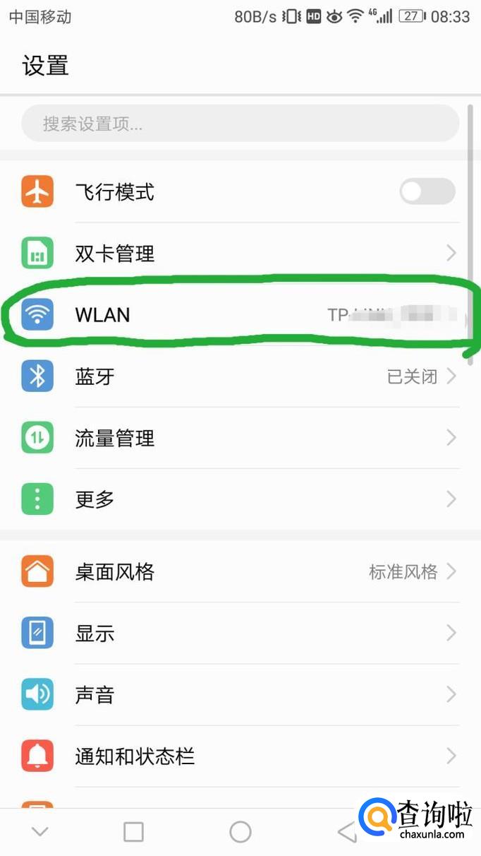 首先,正常连接某wifi,然后打开设置找到“WLAN”设置。