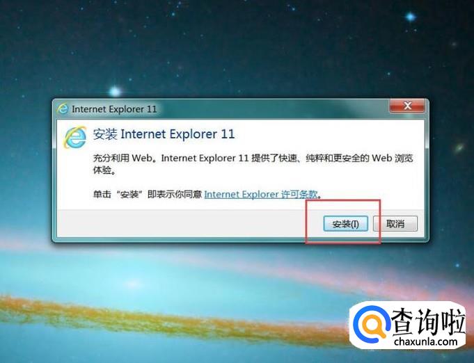 IE 11浏览器安装包下载完毕之后,双击打开安装程序。