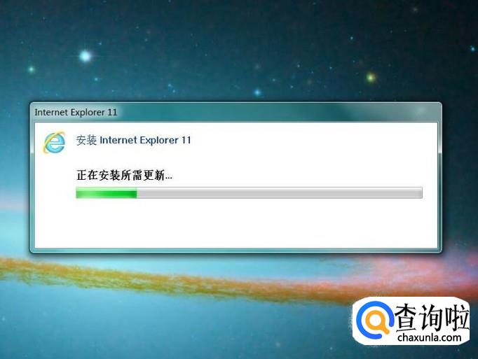 更新安装完毕之后,将正式开始IE 11浏览器的安装程序,此时我们耐心等待即可。