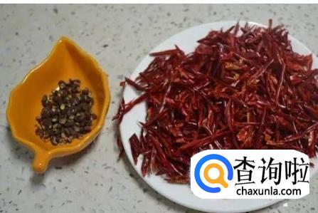 倒入辣椒和花椒