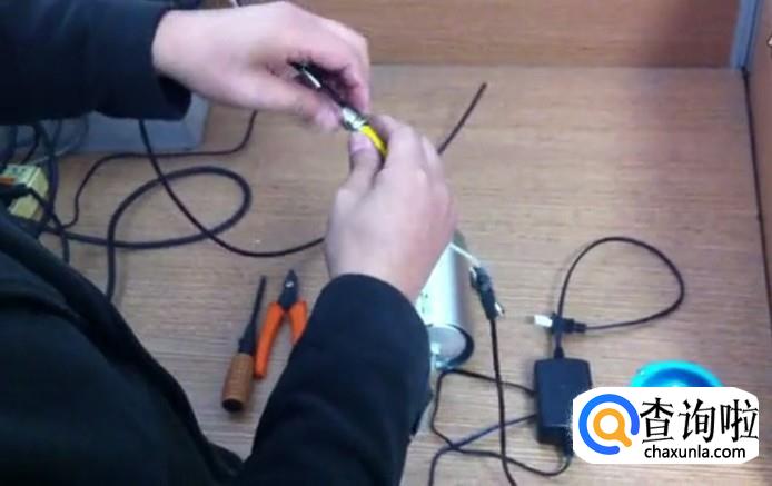拿出BNC接口,接上去用螺丝刀拧紧。