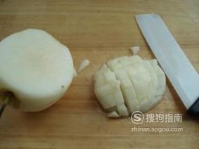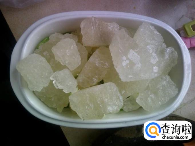 接着把冰糖切成小块小块的,备用。