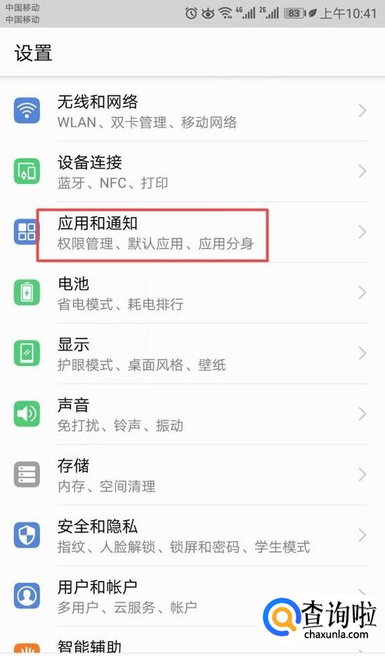 然后我们点击应用和通知;