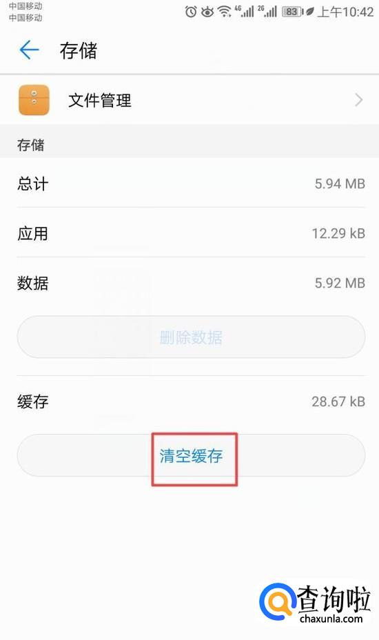 弹出的界面,我们点击清空缓存,之后我们需要重启我们的手机,然后我们的文件管理程序就会运行了,这个问题也就解决了。
