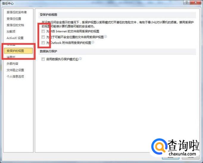 找到受保护的视图打开,去掉右边方格里的选项即可。