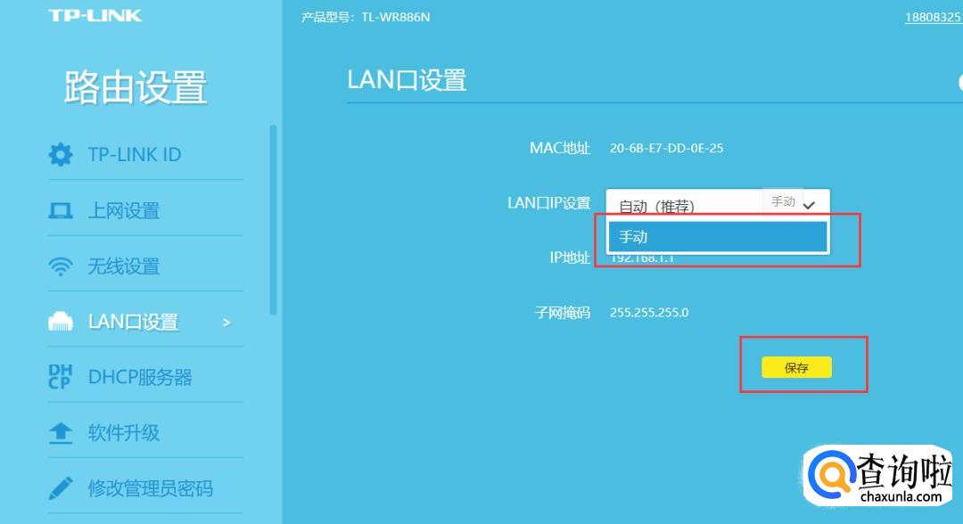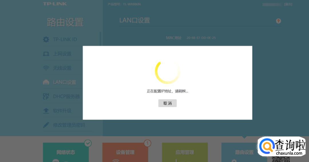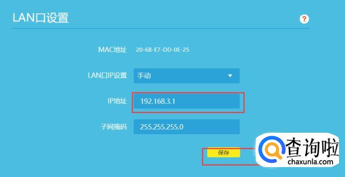 点击右下角的【路由设置】,再点击【LAN口设置】: