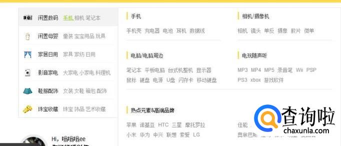 登陆之后我们在主页的坐车可以看到一个导航框,我们根据自己的需要选择相应的类别就可以搜索到相应的二手商品了