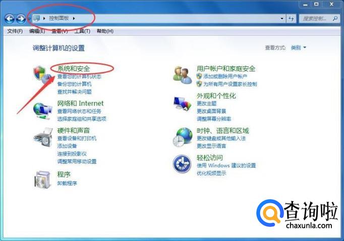 打开【控制面板】,然后点击【系统和安全】,如下图所示: