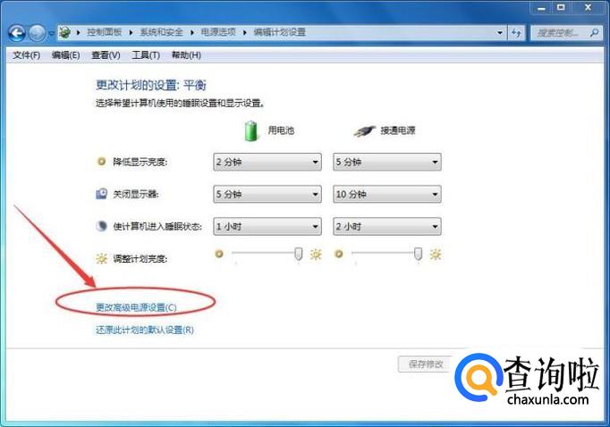 更改高级电源设置