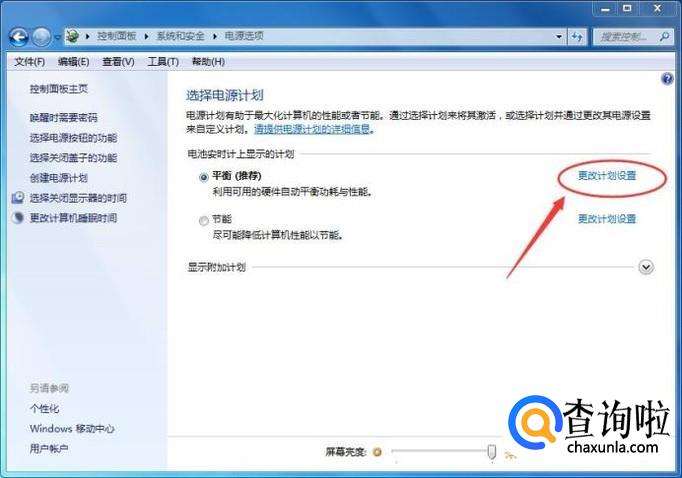 然后点击第一个【更改计划设置】,如下图所示: