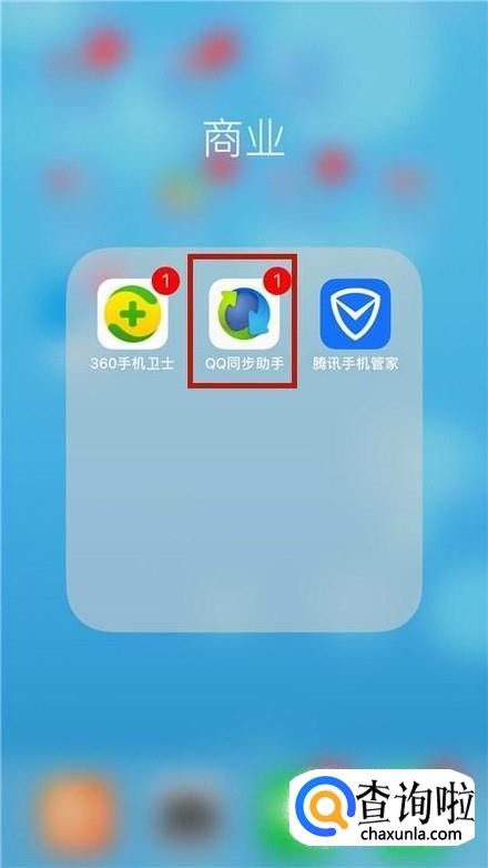 首先在我们的手机桌面上找到QQ同步助手并点击它,如下图所示。