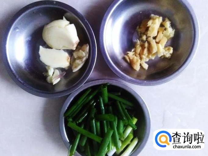 蒜米、姜蓉、香葱丝准备好。