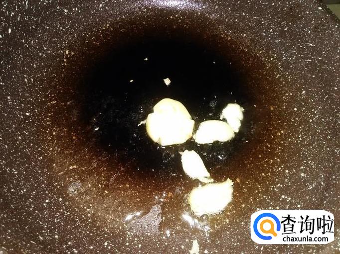 开火下油,放蒜米进去爆香。