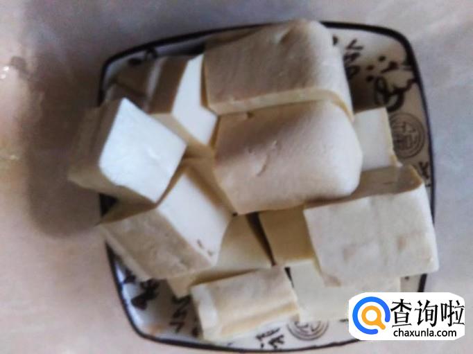 首先把水豆腐切成小方块。